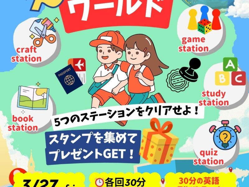 続きを読むいつもレッスンで教えてくれている先生や外国人スタッフが生徒とともに各ブースで様々なアクティビティを用意してお待ちしてます。各ブースをコンプリートしてプレゼントをゲットしよう!各ブース1対1で参加できま …