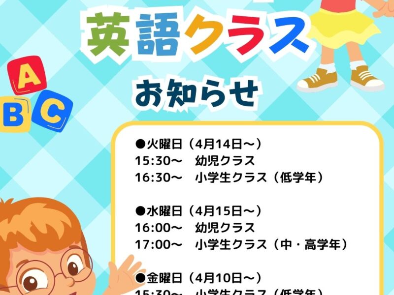 🌸4月から新年度クラスがスタートしますので、ご案内させていただきます🌸 【4月からのレッスン案内】 ◆火曜日(4月14日~)15:30~ 幼稚園クラス16:30~ 小学 …